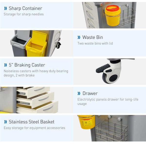 Five Drawers Anesthesia Medical Trolleys With Aluminum Columns Images |